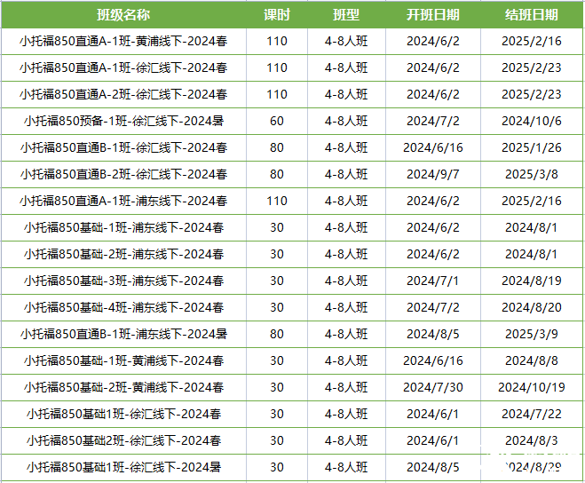 前测成绩645分以下的同学进入小托福基础班;645分-730分的同学进入小托福强化/冲刺班;1V1学员会根据课前测试成绩针对性规划定制课时。