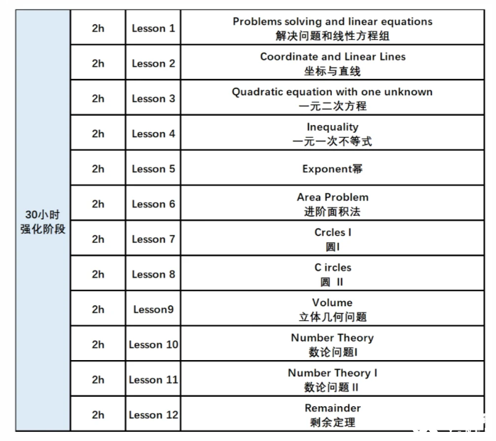 课程目标:AMC8冲刺班课程主要是帮助学生做好赛前准备,结合AMC8历年真题训练学生的时间分配策略和解题技巧。