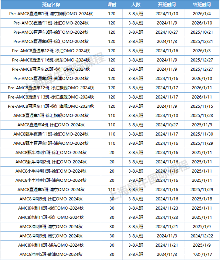 上海犀牛AMC8推出一对一课程和AMC8班课,包括AMC8(基础+进阶+强化)三个阶段的直通车班课。