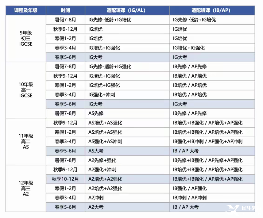 犀牛IGCSE课程辅导分别开设IG先修班,IG培优班,IG强化班,IG冲刺班!