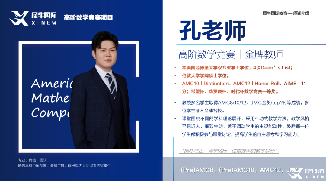 名师授课:犀牛教育AMC8培训课程的教师团队由国内外一流大学的博士、硕士背景的老师组成,他们具有丰富的教学经验和深厚的数学功底。