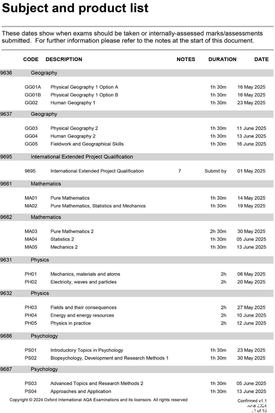 2025 年春季 AQA 考试局大考涵盖了 IGCSE 与 A - Level 阶段,具体时间安排如下。