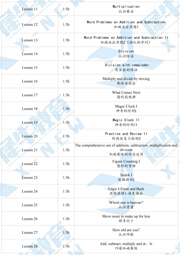 犀牛为参加Level 1(1~2年级)和Level 2(3~4年级)学生设置全程班课程,让零基础的孩子可以通过袋鼠竞赛熟悉数学竞赛的风格,学习基本的竞赛思维和技巧,培养数学的兴趣。