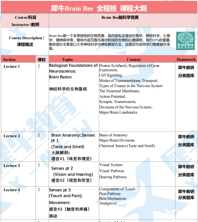 犀牛Brain Bee课程大纲
