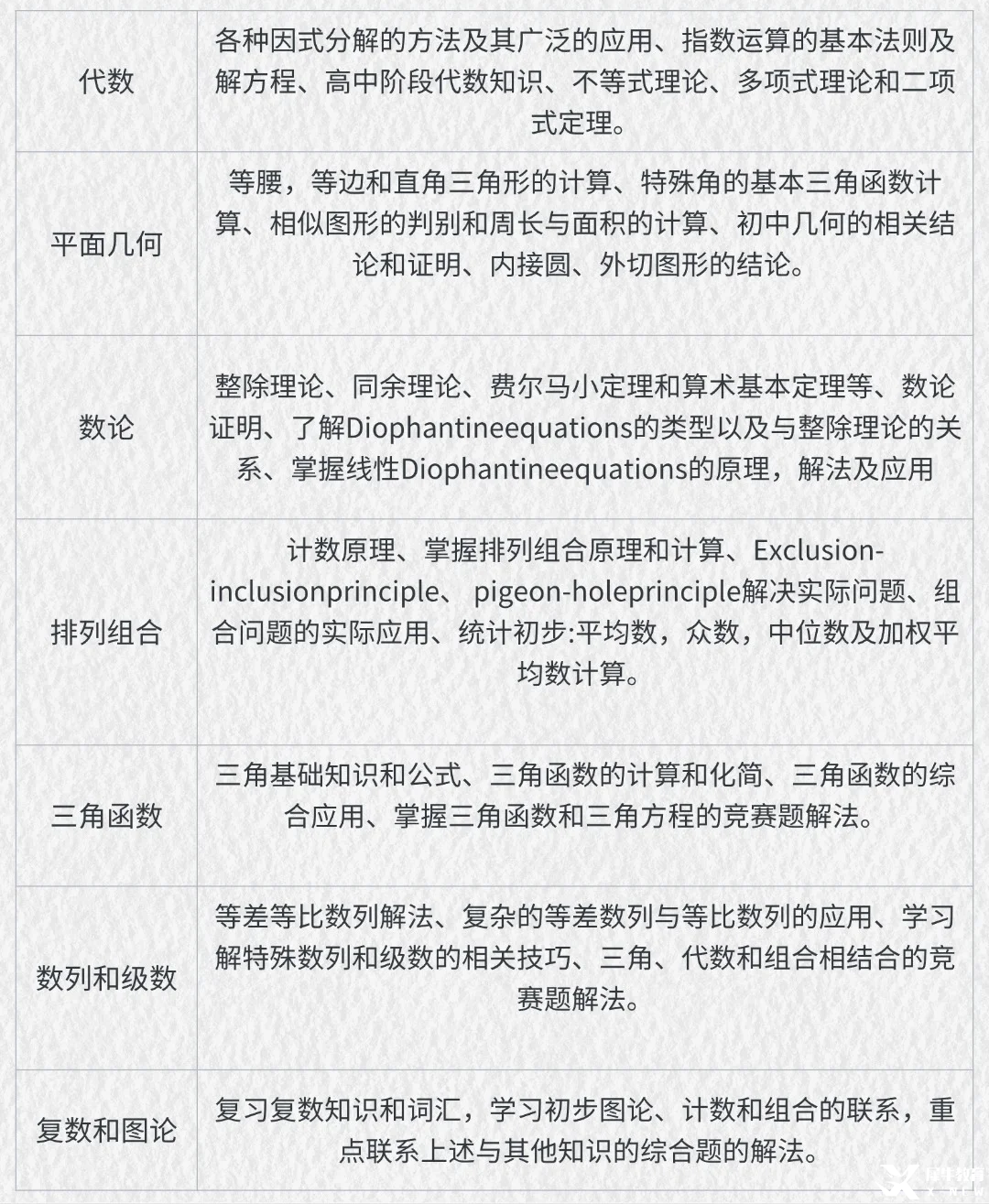 AMC12数学竞赛课程大纲(部分)