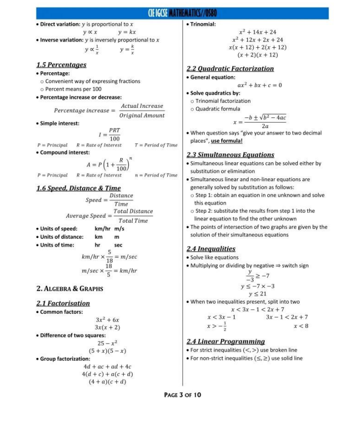 IGCSE数学0580公式