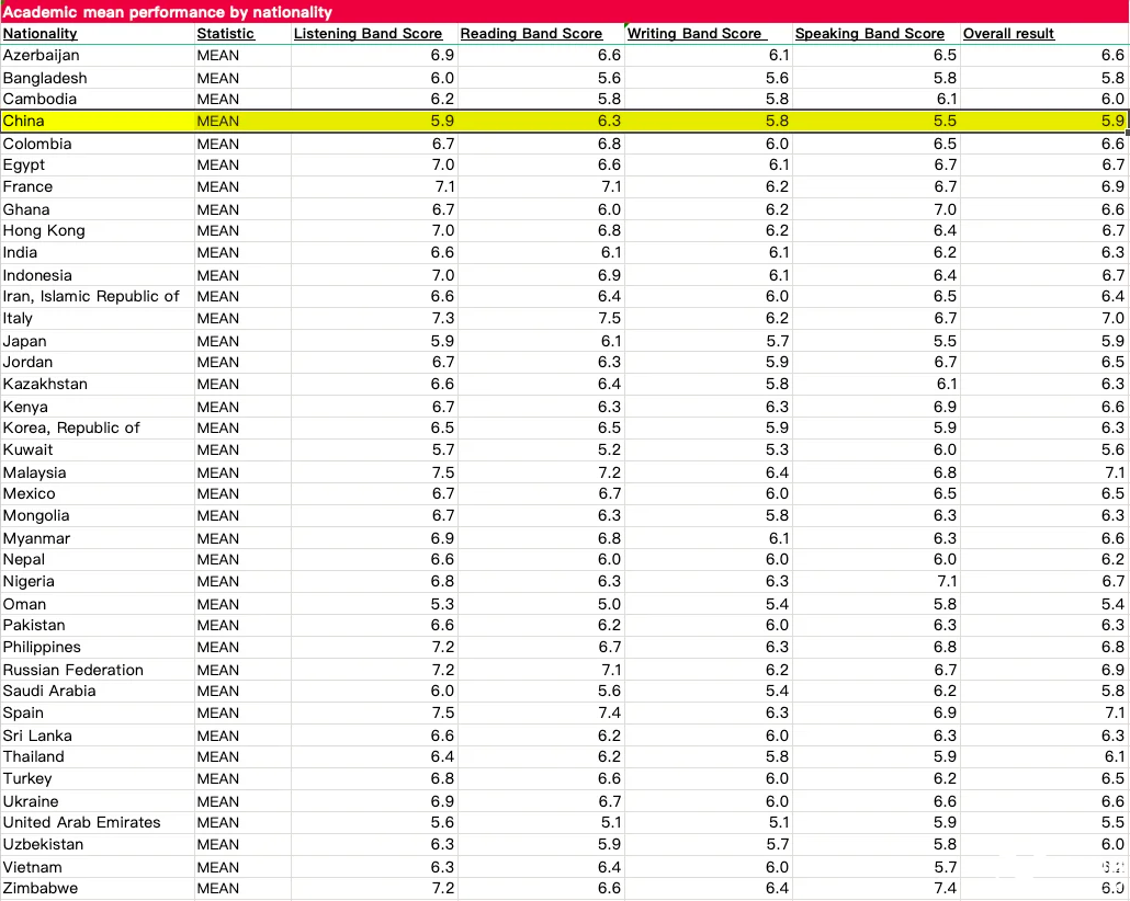仔细一看,这次中国考生的雅思成绩不进反退?!而且中国考生的(A类)学术类考试成绩远远低于(G类)培训类。