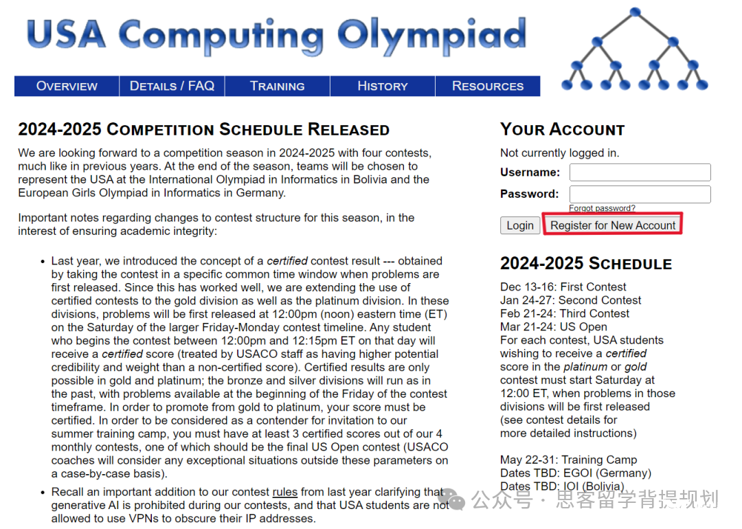 注意:USACO竞赛黄金和铂金级组今年增加了成绩认证,考生必须在美国东部时间周六中午12:00-12:15之间点击开始比赛(中国区需要换算成北京时间),所有人会在同一时间参赛。如果没有在规定时间进入,那么成绩将无法被认证。