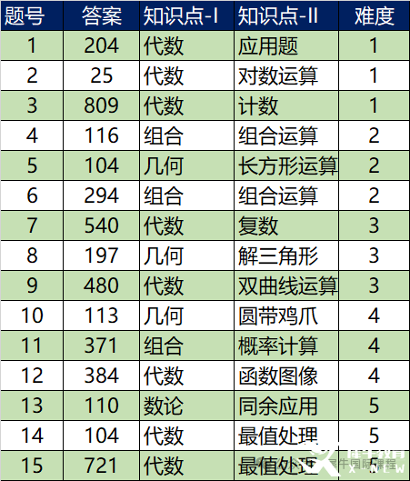 今年AIMEⅠ卷代数部分的占比增加,共考察了8道代数题。