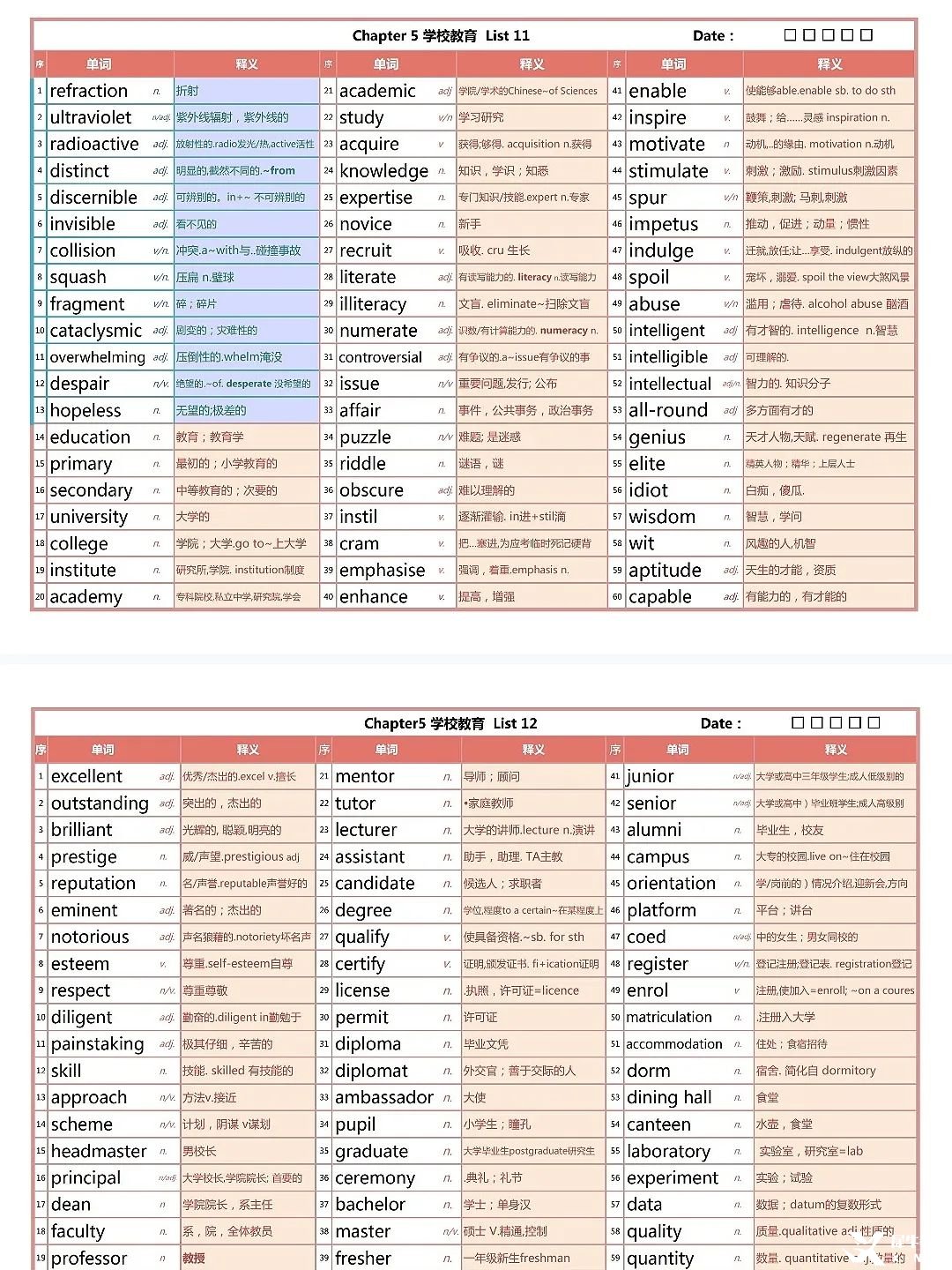 雅思英语备考第一步,就是提高词汇量,对考生来说,申请海外名校Offer,成绩不得低于7.0分,对应词汇量不得低于8000+,那么雅思英语备考怎么提高词汇量呢?小编老师为大家整理了英语词汇彩色list,词汇差的宝子们,千万不要错过