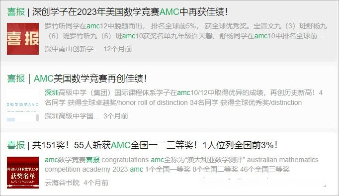 在深圳这个教育资源丰富、竞争激烈的城市,孩子参加AMC8等数学竞赛并取得好成绩,可以增强他们在申请学校或奖学金时的竞争力。如深圳中学、深圳实验学校、深圳外国语学校和深圳高级中学等,深圳的许多国际学校,如贝赛思、深国交等,将其成绩作为录取的重要参考。