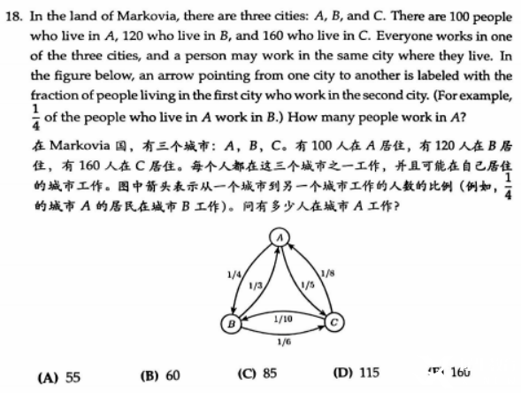 例如第18题,学生不仅需要理解马尔科维亚土地上居民的工作与居住规则,还要通过图片读懂各城市之间不同占比的人口如何通过箭头流向其他地方工作。这种题型的设计对学生的读题和看图能力提出了较高要求。