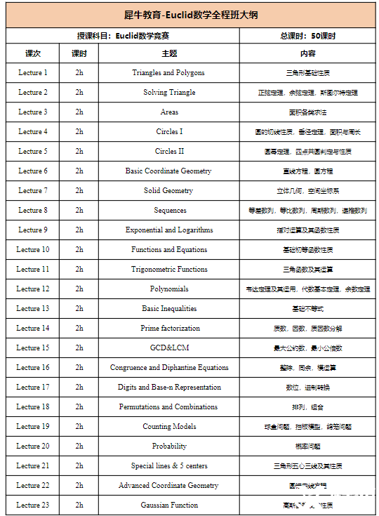 2025年欧几里得竞赛课程安排