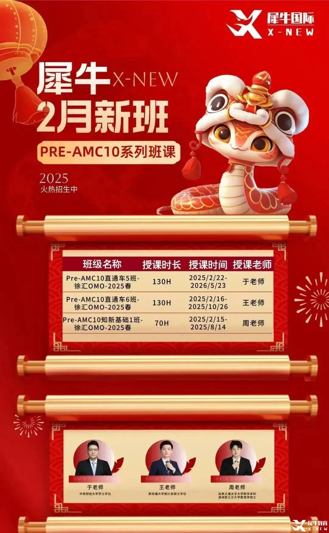 犀牛AMC10培训师资团队由顶级海内外高校毕业老师组成,AMC10课程培训经验十分丰富,拥有多年教龄和丰富教学经验,可以进行纯英文或中英双语授课,能够提供针对性的指导!!