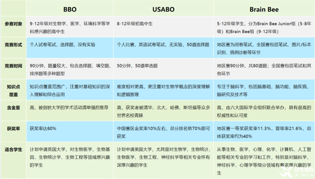 在生物竞赛领域,BBO、USABO和Brain Bee(脑科学大赛)是三大备受瞩目的赛事。它们都具有较高的含金量,但各有特点,适合不同的学生群体。今天,我们就来详细对比一下这三大竞赛,帮助大家找到最适合自己的选择!