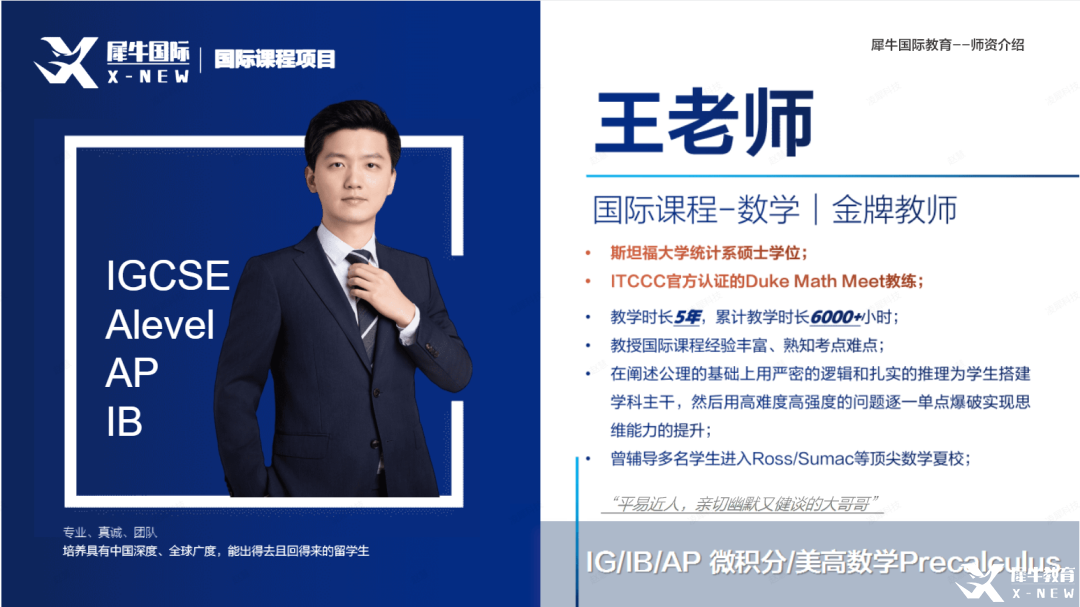 犀牛教学团队师资由海内外一流院校毕业生组成,包括:英国G5院校、国内清北复交等,多年的教学积累了丰富的教学经验,结合教师个人的打比赛经历,真正做到因材施教,针对性教学备考。