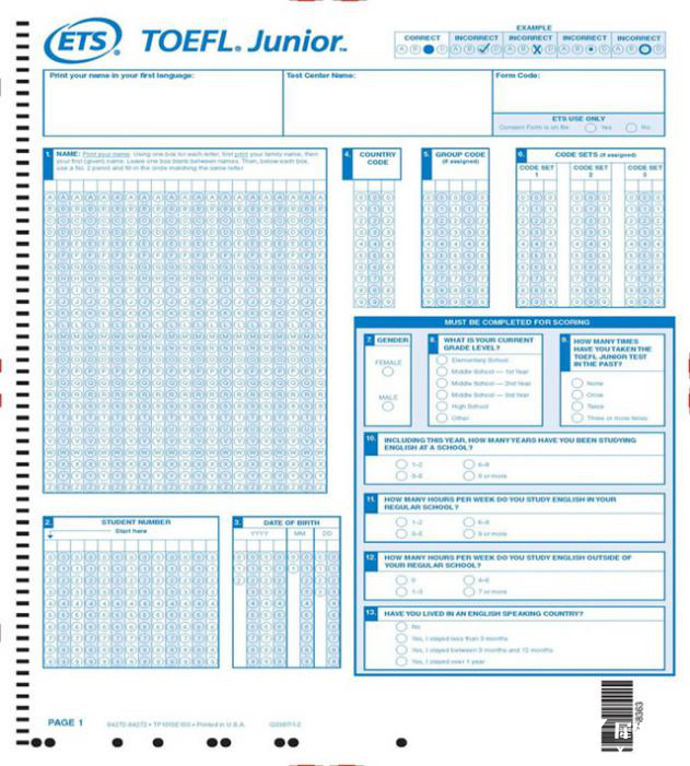 小托福考试采取客观选择题为其考试形式,考生需要填写答题卡。