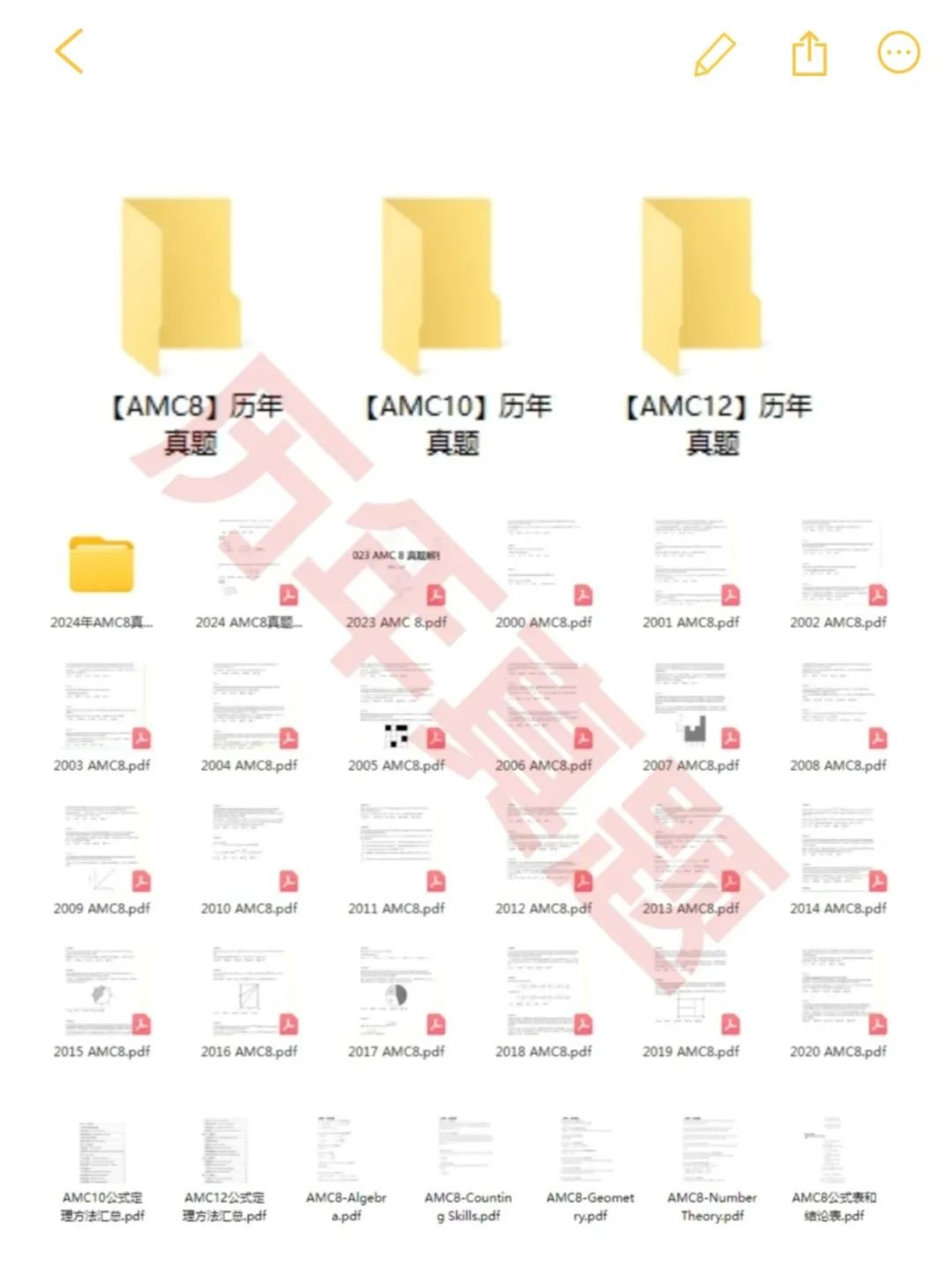 首先小编给大家整理了AMC8竞赛考前必备的资料(历年真题+公式定理+AMC高频词汇+题型分类汇总+.....)