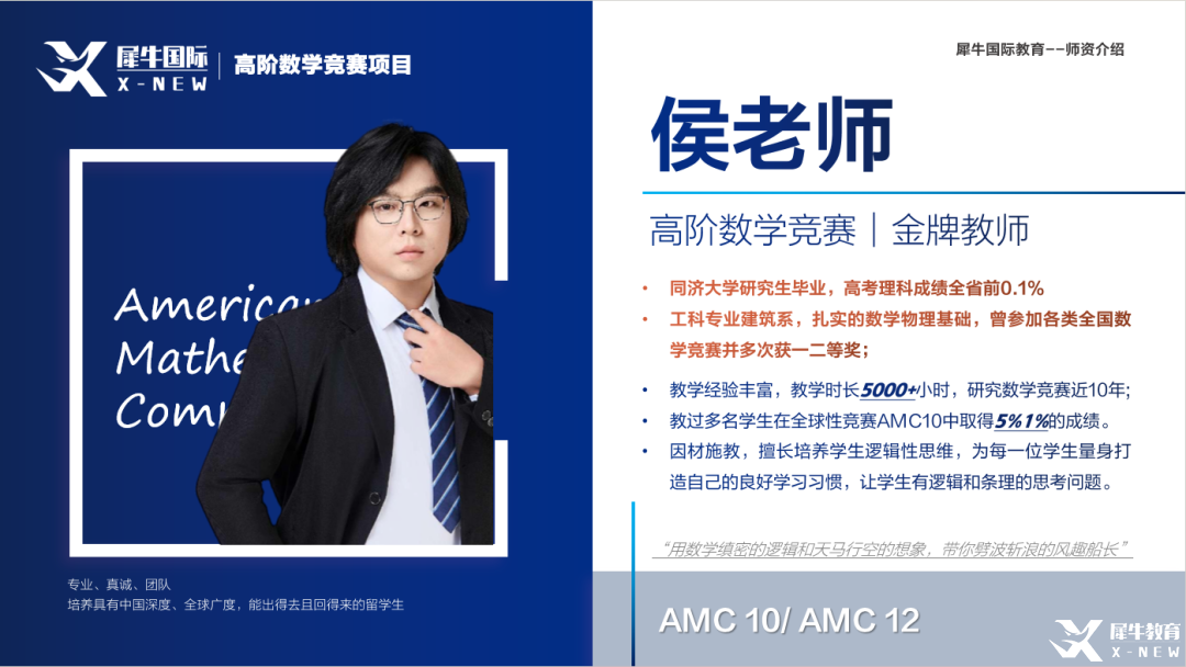 犀牛教育2025年犀牛AMC12竞赛全程班课程火热报名中~根据学生不同基础开设AMC12直通车、AMC12优享班、AMC12冲刺班等多种班型课程。
