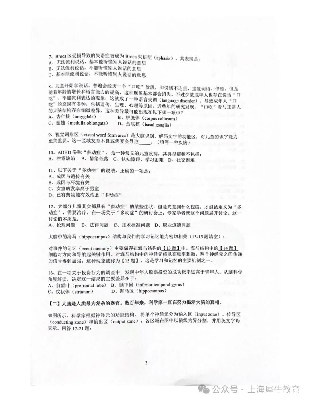 2025年Brain Bee脑科学活动考试真题(完整版)
