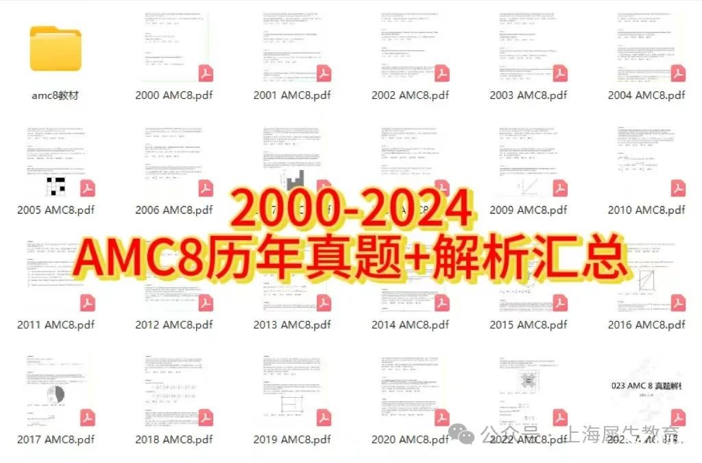 篇幅有限,下面给大家整理了2000-2024年AMC8数学竞赛真题+解析汇总,高清PDF版,可添加老师微信领取~