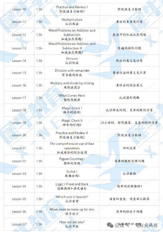 犀牛教育开设了袋鼠数学竞赛培训班,分为全程班(60h)、强化班(30小时)和冲刺班(15小时)。课程内容涵盖竞赛重难点回顾、专题分类复习、真题训练及答疑。