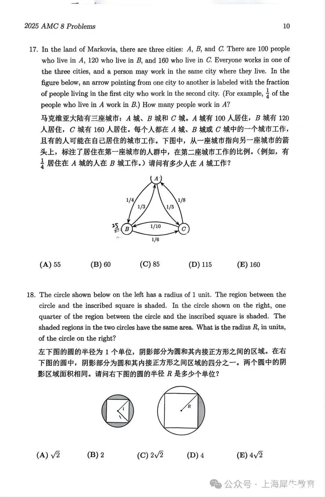 2025年AMC8考试已经结束,给大家分享一下完整版AMC8真题,历年AMC8真题解析文末领取~