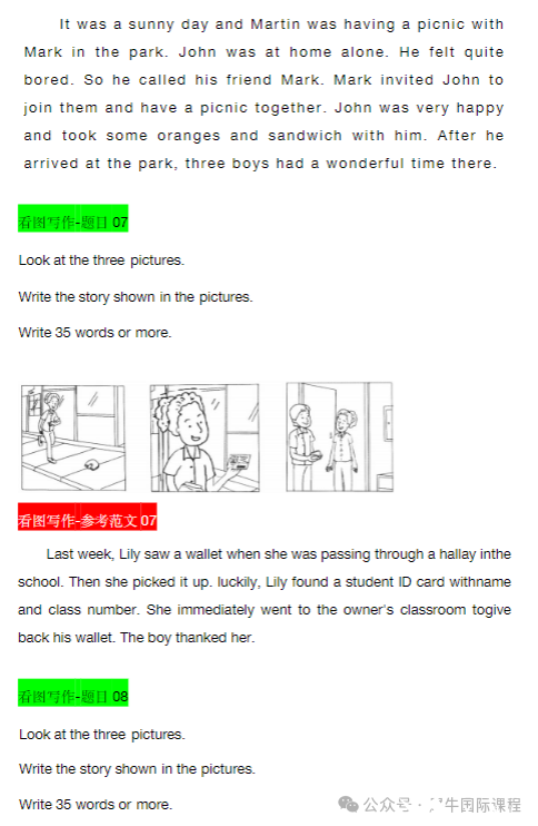 - 要求:根据题目给出的3张图片,写一篇35词以上的短篇故事,描述图片中的信息。