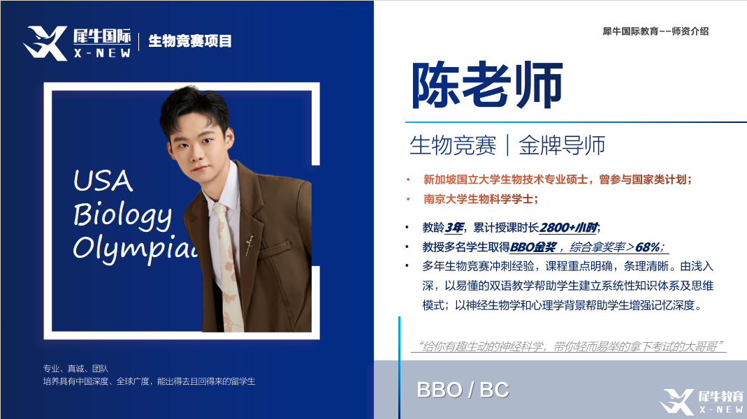BBO(British Biology Olympiad)英国生物奥林匹克竞赛,是英国中学历史最长、影响最大的理科活动之一,每年英国有近万名高中生参与,获奖含金量较高,与USABO同属于比较有影响力生物理论竞赛。于2016年由ASDAN引进中国。