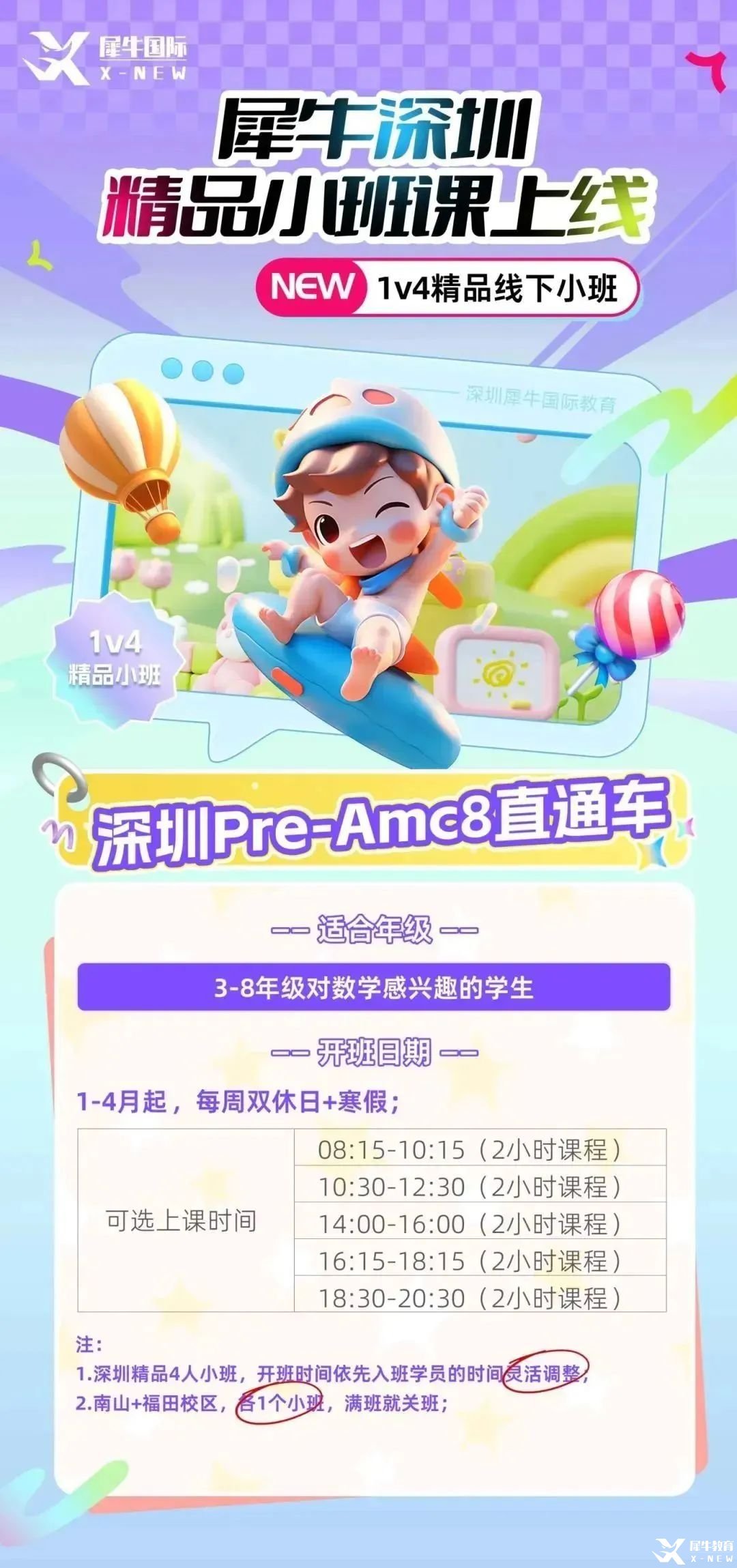 课型设置:Pre-AMC8直通车/AMC8全程班/基础班/ 强化班/冲刺班/模考点评班/1对1指导