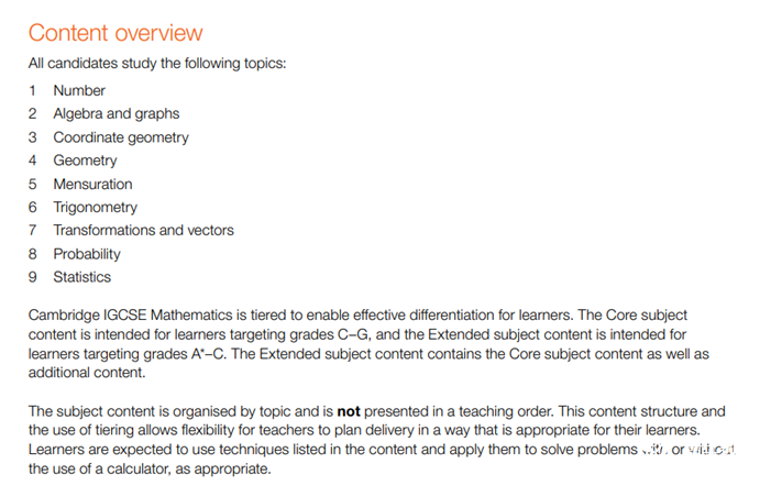 首先是数学,IGCSE数学分为普通数学(0580)和附加数学(0606)两门课程。