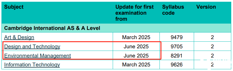 CIE 考试局对部分大纲做重大修改,涉及内容、评估等。如设计技术、法语语言等,2025年6月首考。像法语语言新大纲取代旧课程,侧重培养特定语言技能,由四部分组成,德语变化类似。