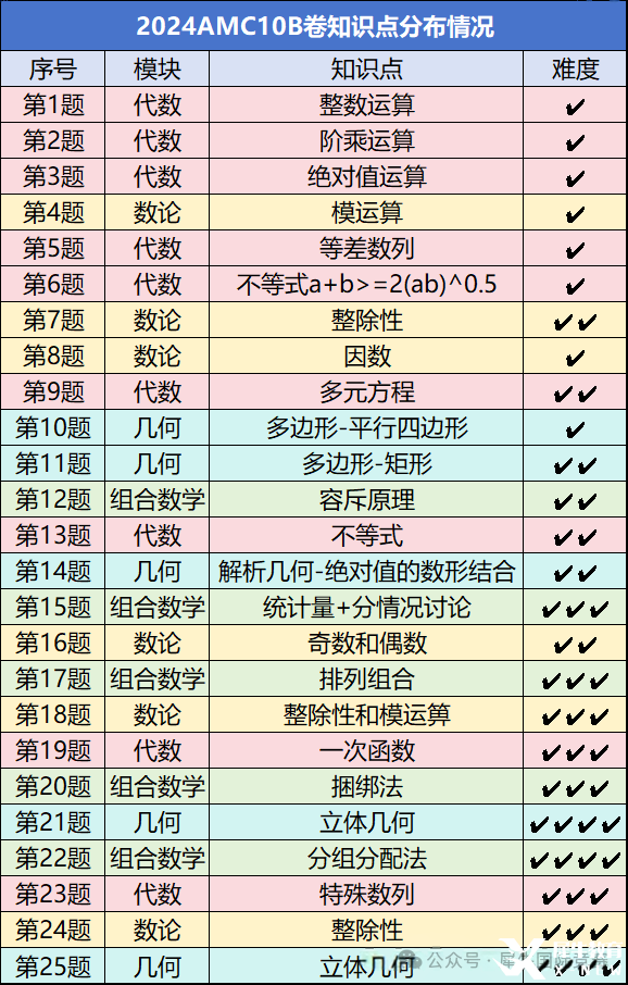 数论题目偏多,几何题目偏少:出现很多数论题目,多为数字推理问题,数感好的同学有优势;几何题目可能是历年来最少的一份试卷,与几何越来越重要的趋势相悖。