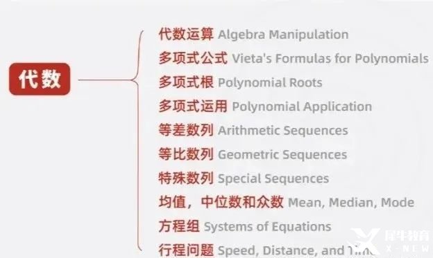 代数是AMC10数学竞赛考试内容的重点,占比约40%。主要考查内容包括: