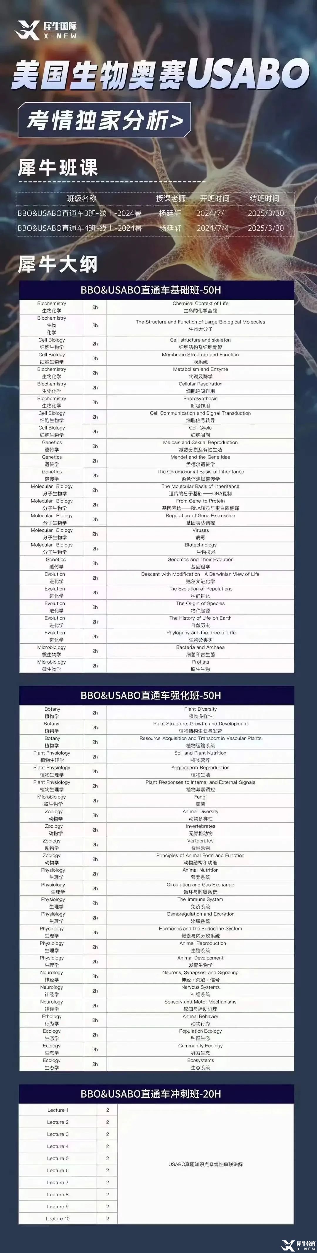 犀牛USABO&BBO直通车课程大纲: