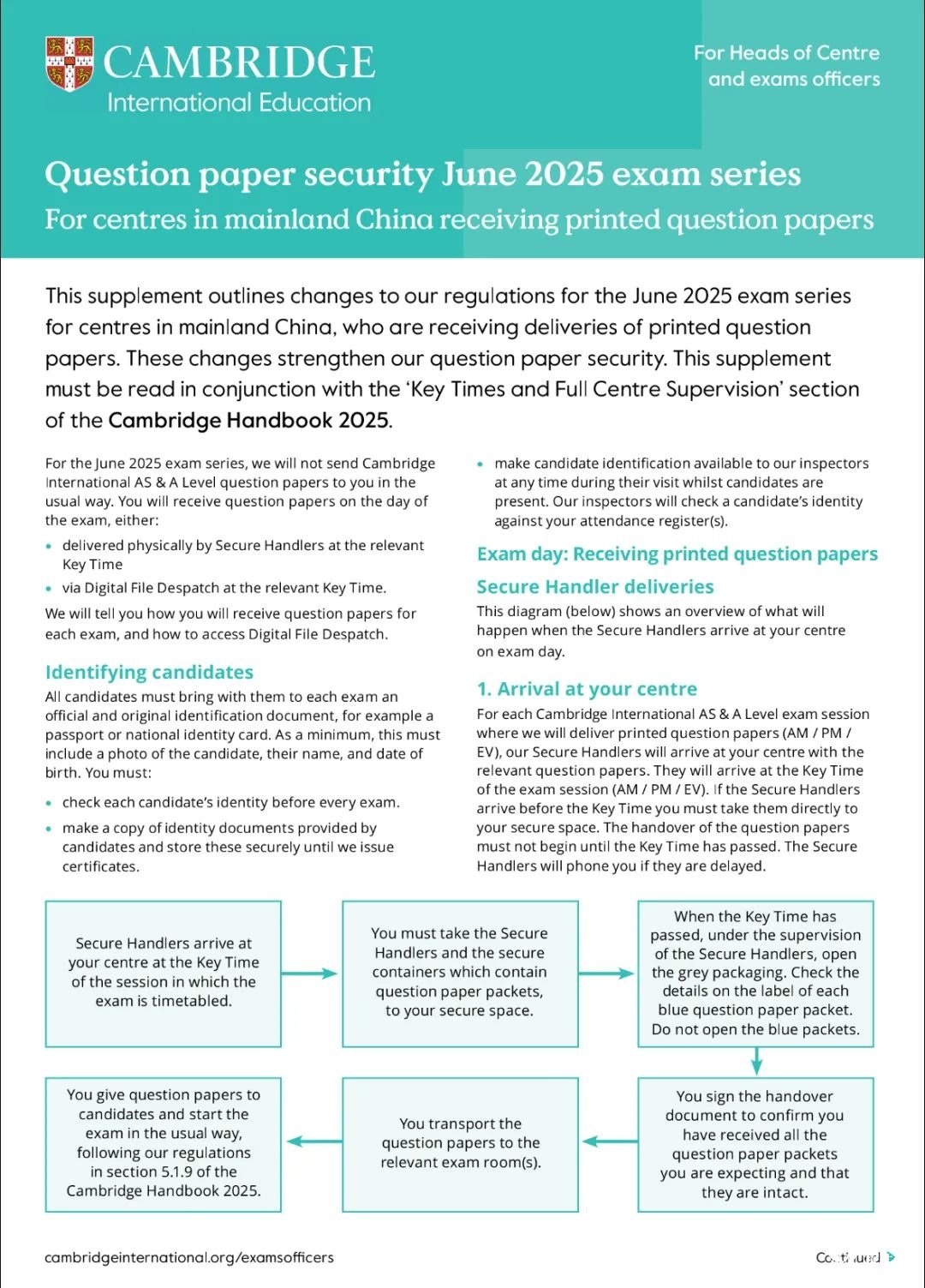 剑桥国际考试对考试的安全性高度重视,特别是在中国大陆地区的考试实施过程中。
