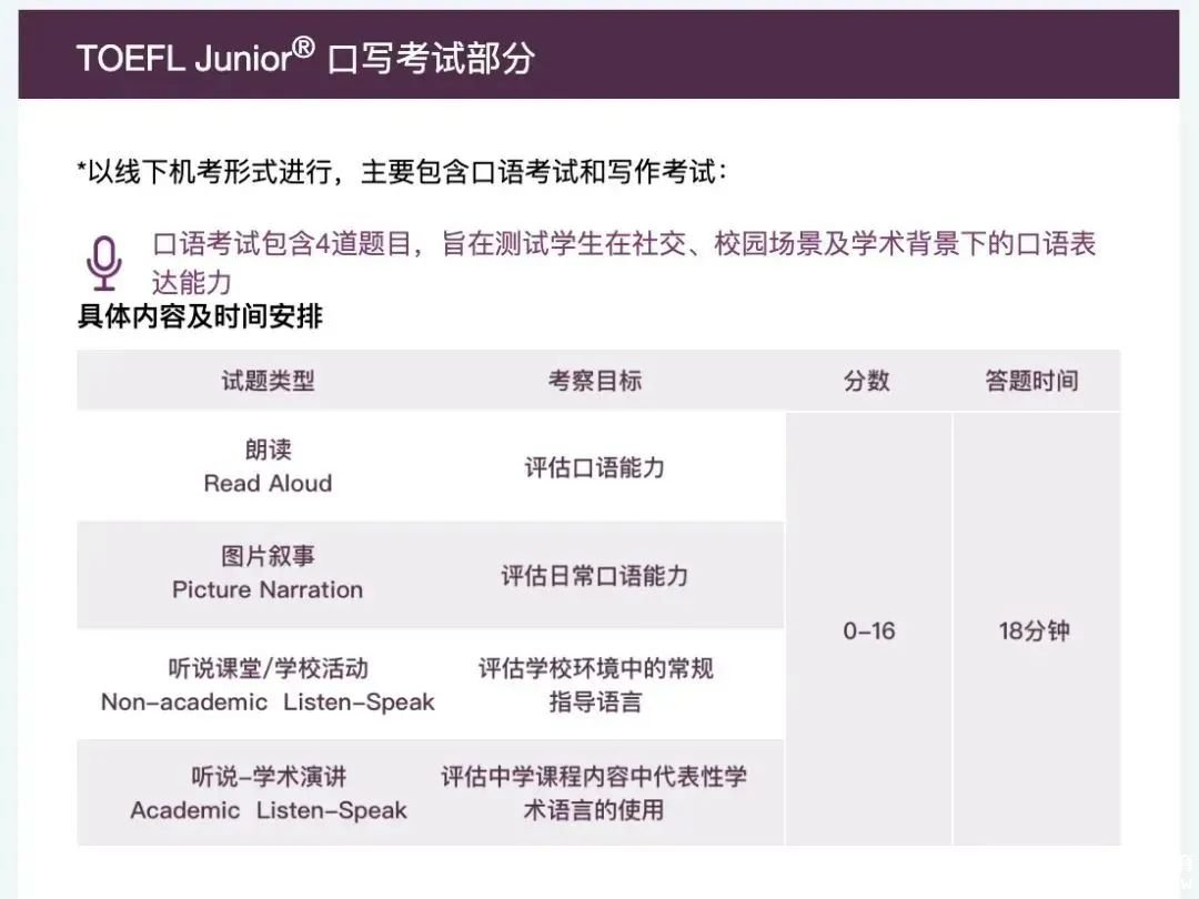 TOEFL Junior,即小托福,适用于17岁以下学生,主要用于衡量学生在校园学术生活和日常社会生活中的英语语言水平,了解其听力、语言形式与含义、阅读、口语以及写作能力。