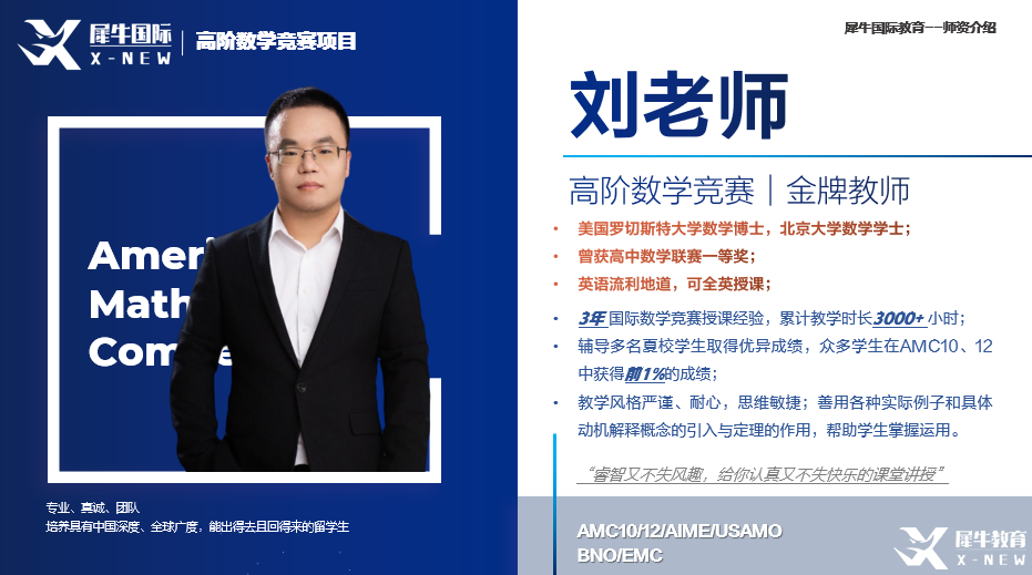 犀牛国际教育AMC竞赛师资团队实力背景强大,教师由斯坦福大学、剑桥大学、英国G5以及国内清北复交院校的博士硕士组成。