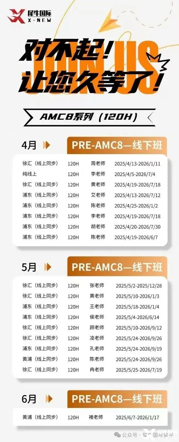 犀牛国际教育开设的AMC8竞赛培训班,一直是滚动开班中,对不同基础的学生,开设了不同AMC8竞赛培训班