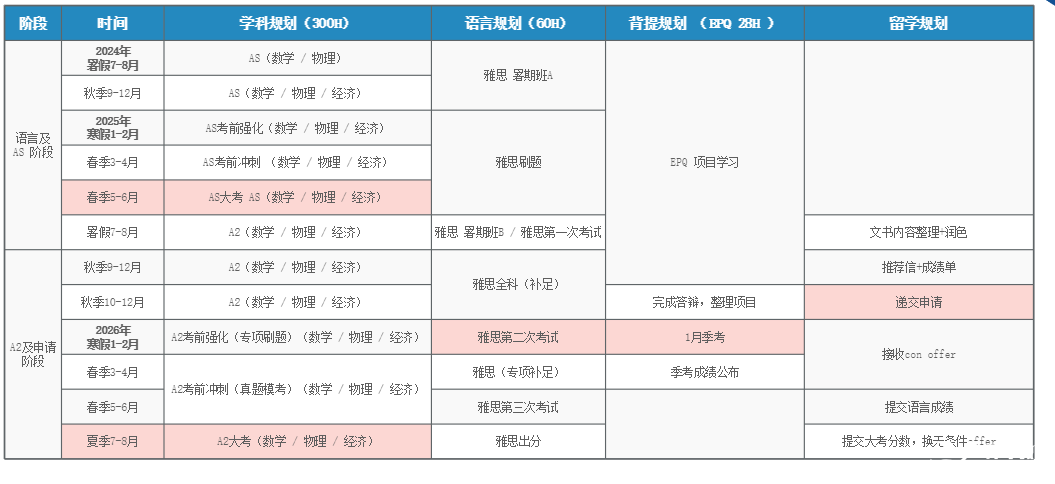 1年内完成AS+A2课程,次年即可进入本科预科或备战STEP/MAT等加试;