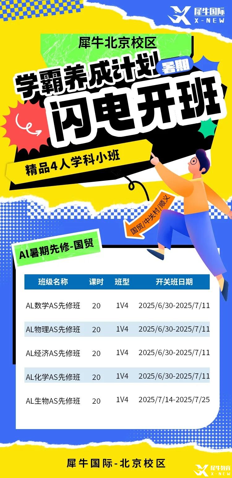 初升高即将踏入国际学校,面对全新的 IGCSE 课程,是否感到忐忑不安?语言障碍、学科跨度大、学习方法差异……这些“不适应”该如何应对?答案其实很简单:提前预科学习!犀牛教育的 IGCSE 暑期先修班,不仅能帮你夯实基础,还能减轻新学期的学习压力,让你轻松开启国际高中的学习生活!