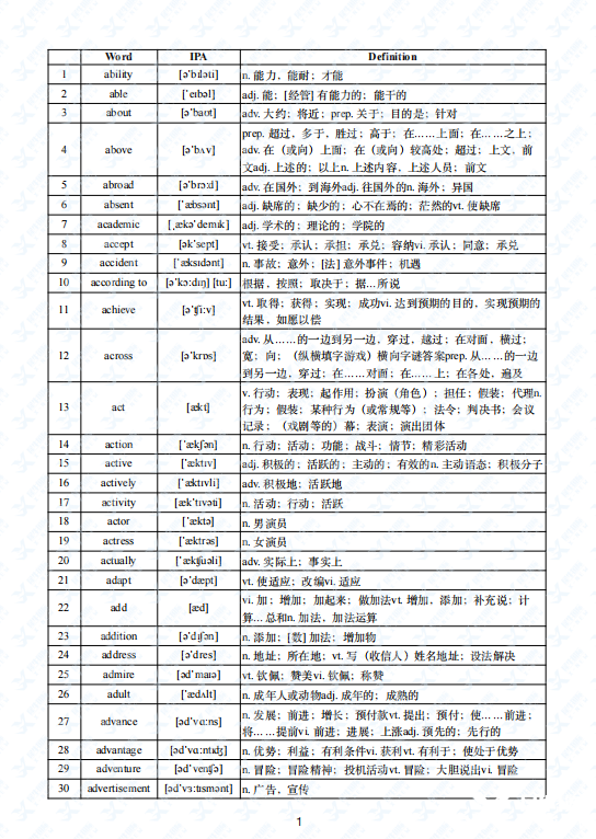 这两份词汇表可以满足不同基础需求,覆盖了广泛的领域,包括学术、日常生活、自然、科技等,适合中学生及同等英语水平的学习者使用,可以帮助他们扩展词汇量。