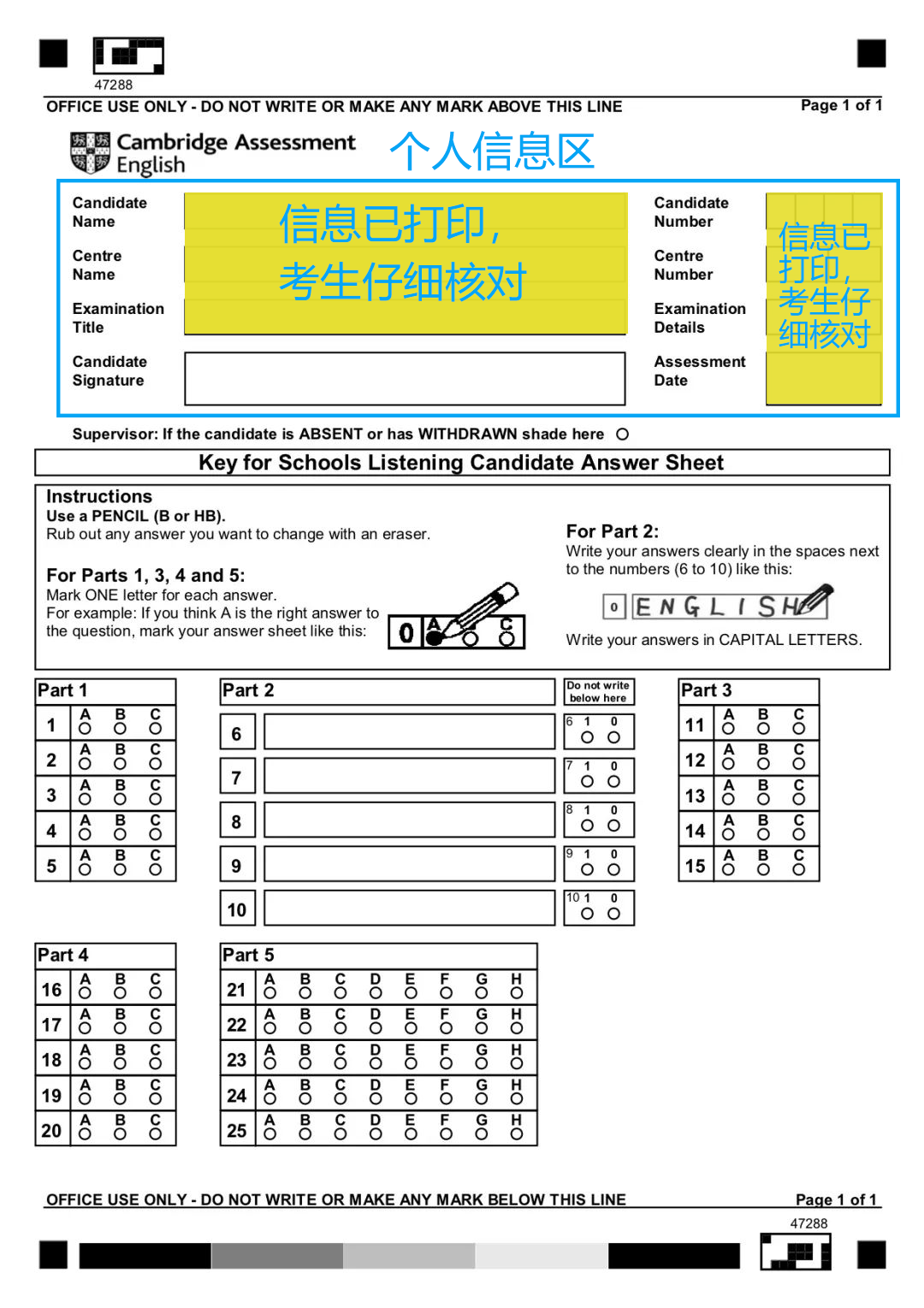 注意!根据剑桥英语考试最新发布的调整,KET/PET主观题答案建议大写,但是大小写不计分。也就是只要是正确答案,小写仍然可以得分。