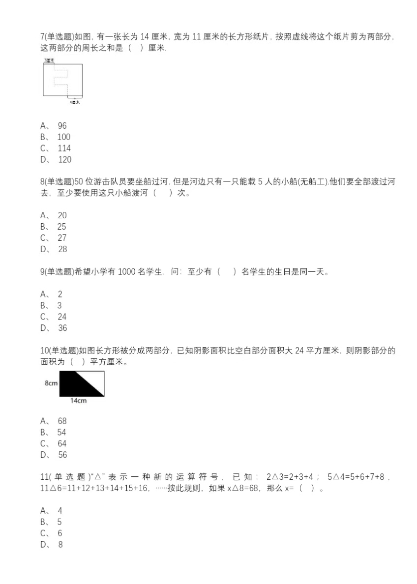 YMO数学竞赛六年级复赛历年试卷