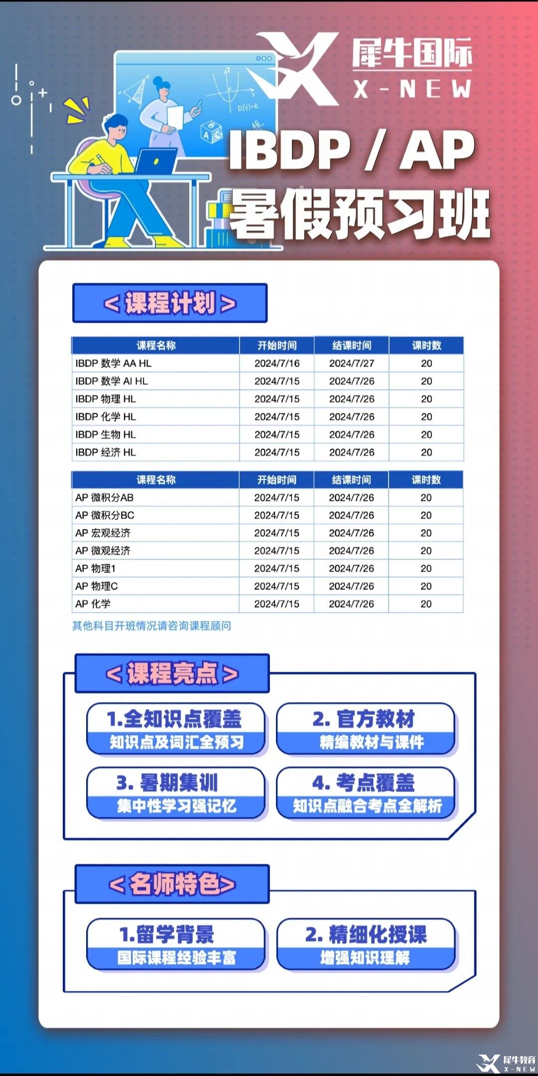 犀牛IB修班课程,主要是通过对基础知识点的梳理,让学生快速理解相应学科的基本知识,同时培养科目兴趣为后续深入学习做准备。