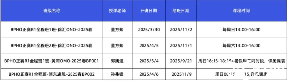 目前BPHO正赛R1全程班2班-徐汇OMO-2025春( 剩1个名额 )
