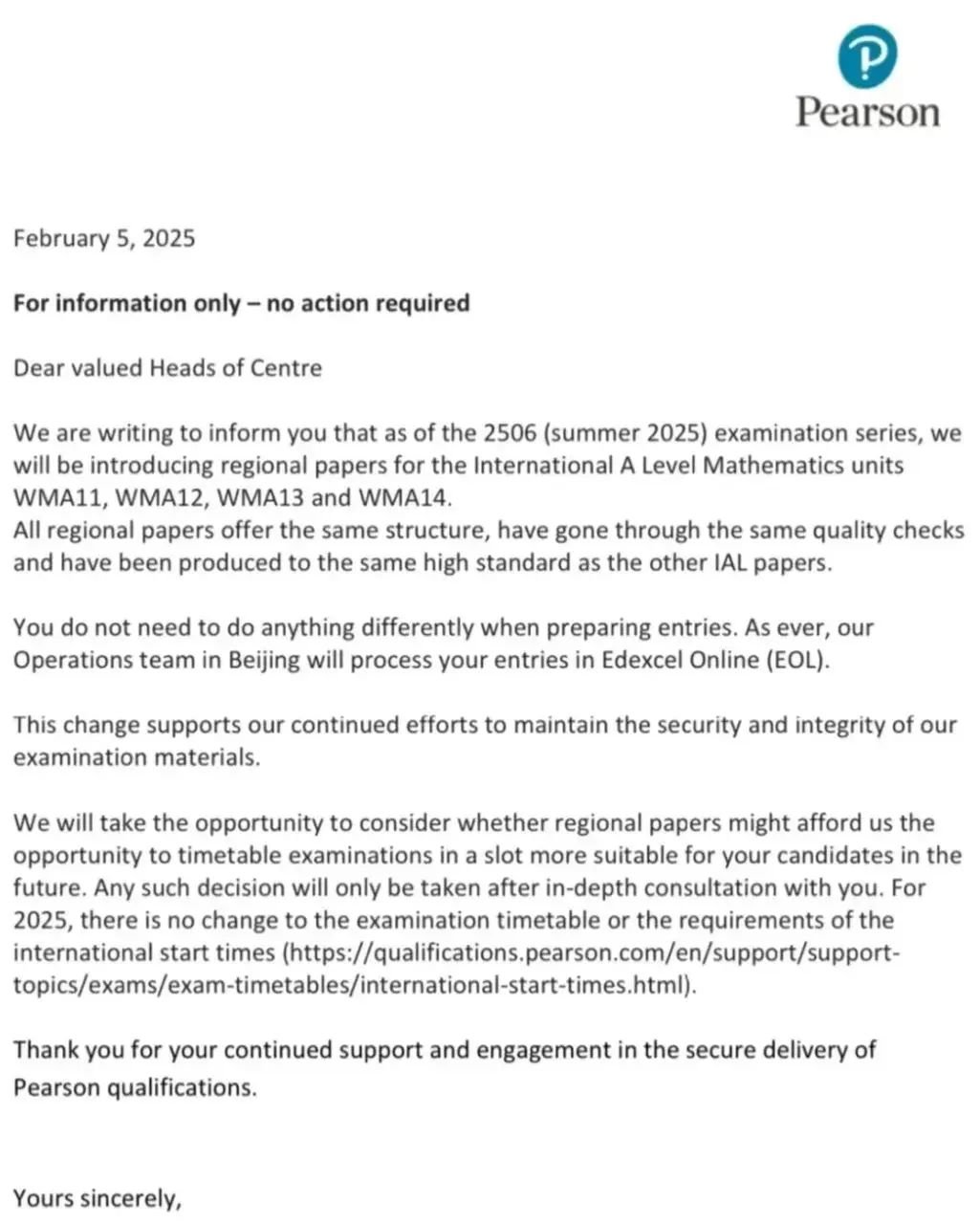 考生和考试中心无需做任何额外调整,报名流程仍通过Edexcel Online(EOL)系统正常进行,由北京团队统一处理。换句话说,这次改革不会影响报名和考试安排,考生可以按照原计划备考。