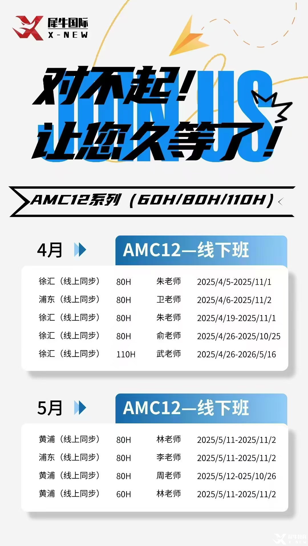 AMC12冲刺班:适合已经学完全部基础考点并掌握牢固的学生,考前2-3个月进行考前冲刺,目标5%或1%的学生