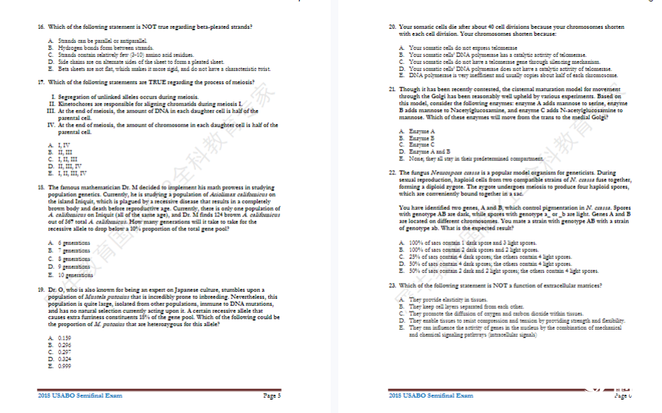 USABO50道选择题,每题一分