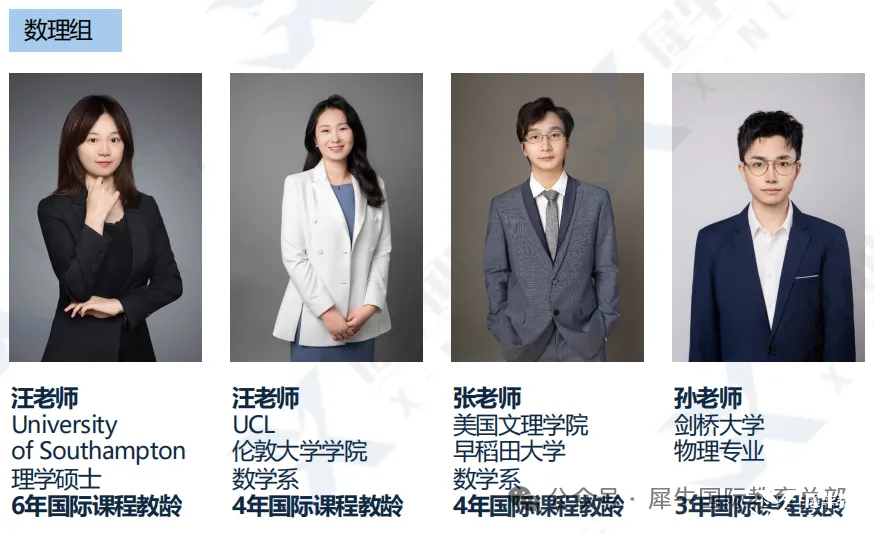 犀牛教育老师均来自海内外名校:清北复交、剑桥、纽约大学等,教学经验丰富,熟知国际学科考试特点及题型,能很好的帮助同学们在考试中取得不错的成绩。